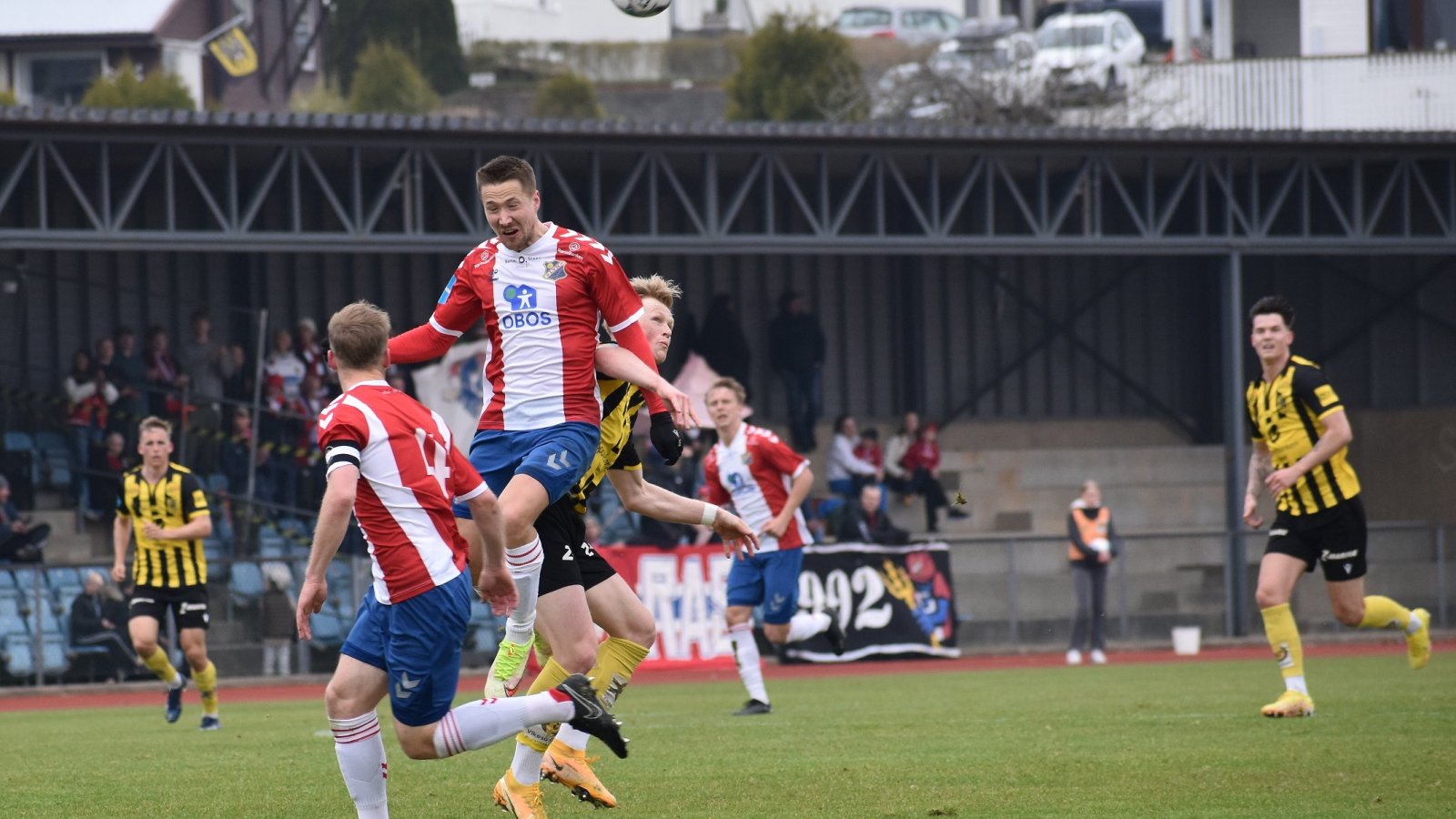 66´ MÅL EGERSUND! Påfølgende frisparket stanges inn og stillingen er 1 – 1.