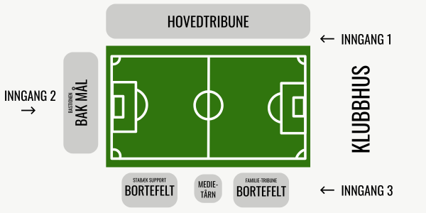 - Sesongkort på felt B (Bislett) → plasseres bak mål på ståfeltet