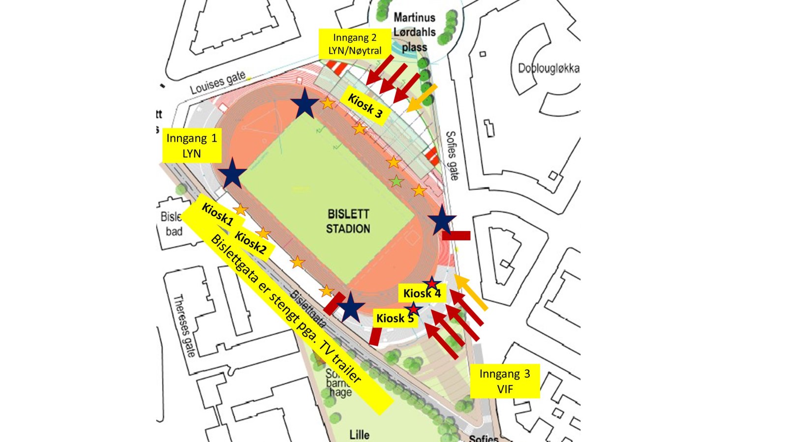Politiet har forsikret oss om at de skal ha fullstendig kontroll utenfor stadion og vi har leid inn politi og vektere som skal sørge for god sikkerhet både før, under og etter kampen.