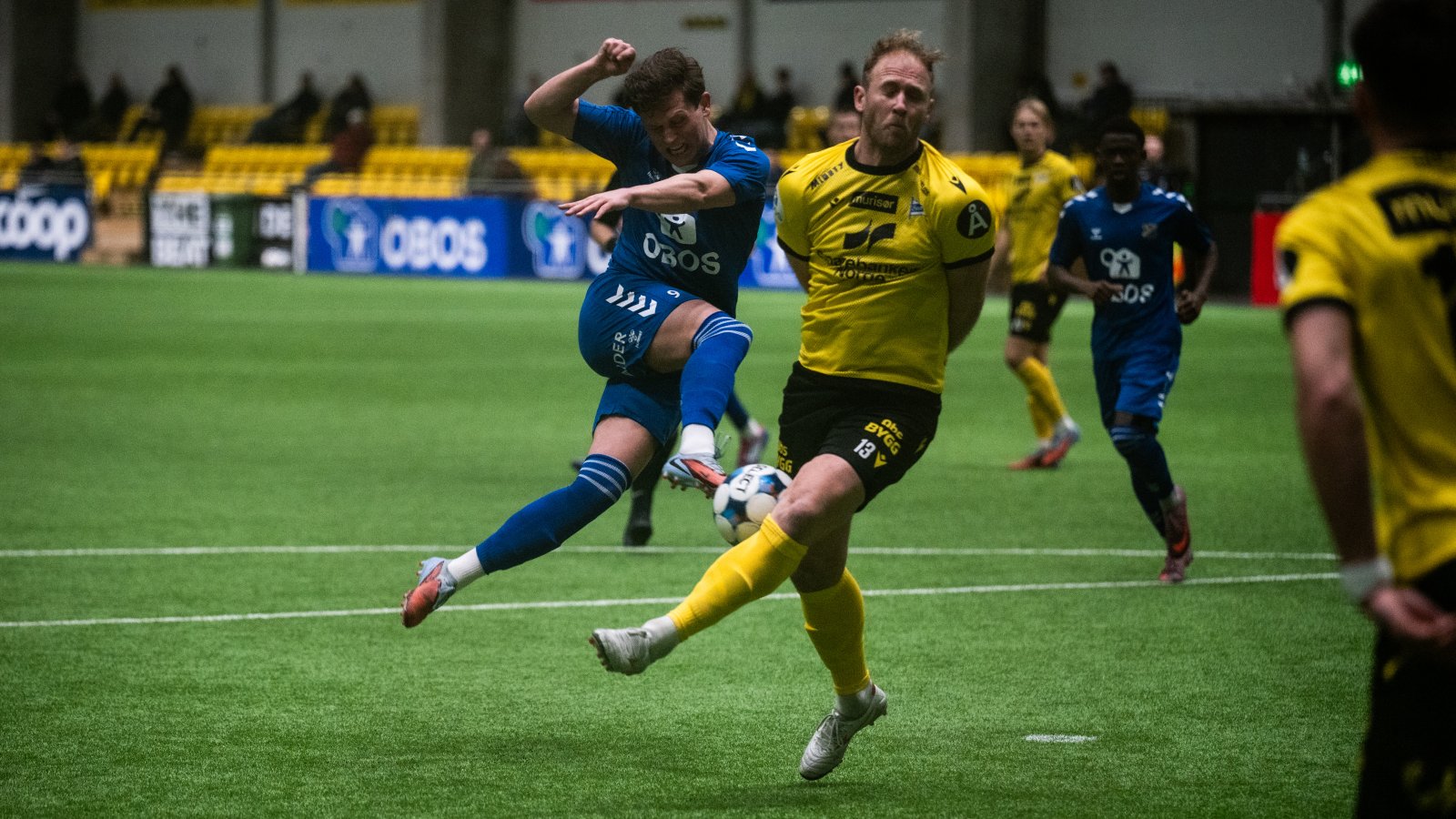 Drøye tre måneder har gått siden vi mistet playoff-plassen i siste serierunde, og det var Azar Karadas og gjengen fra Sørlandet som kunne juble for opprykk i bortesvingen på Bislett. Det var derfor et revansjesugent Lyn-lag som tråkka ut på kunstgresset i LSK-hallen denne «superfredagen», stappfull med Lyn-kamper. Med gamle kjente på motstanderbenken i form av vår egen Alexander Aaser, var det Lyn som begynte best og kom til kampens første avslutning etter bare tre minutter. En lang diagonal ball fra Mathias Johansen ble heada inn igjen i feltet av Herman Solberg Nilsen, men Ebrahima Sawaneh fikk ikke styrt avslutningen som gjør det enkelt for Start-keeper Stand-Kolbjørnsen å få henda på ball.