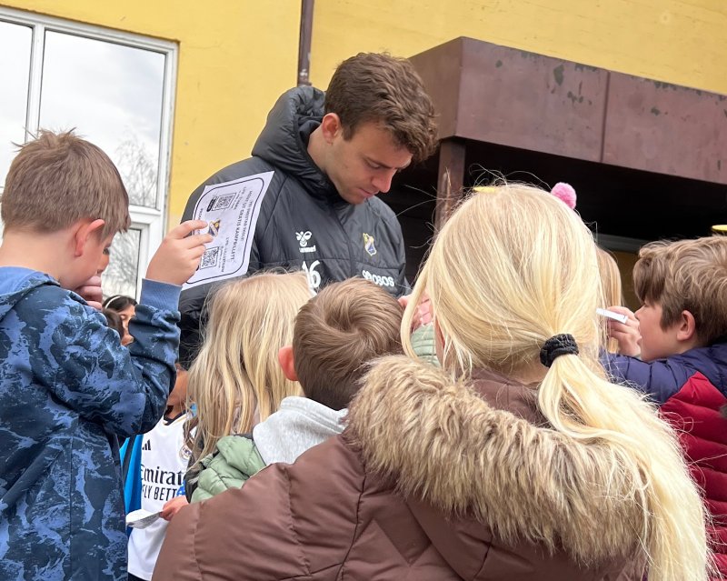 Det ble skrevet autografer så blekket sprutet, bokstavelig talt, til stor stas for de unge elevene. Veldig gøy å møte så mange Lyn-supportere på Smestad og spillerne våre fikk seg mange hyggelige samtaler med de unge Lyn-supporterne.